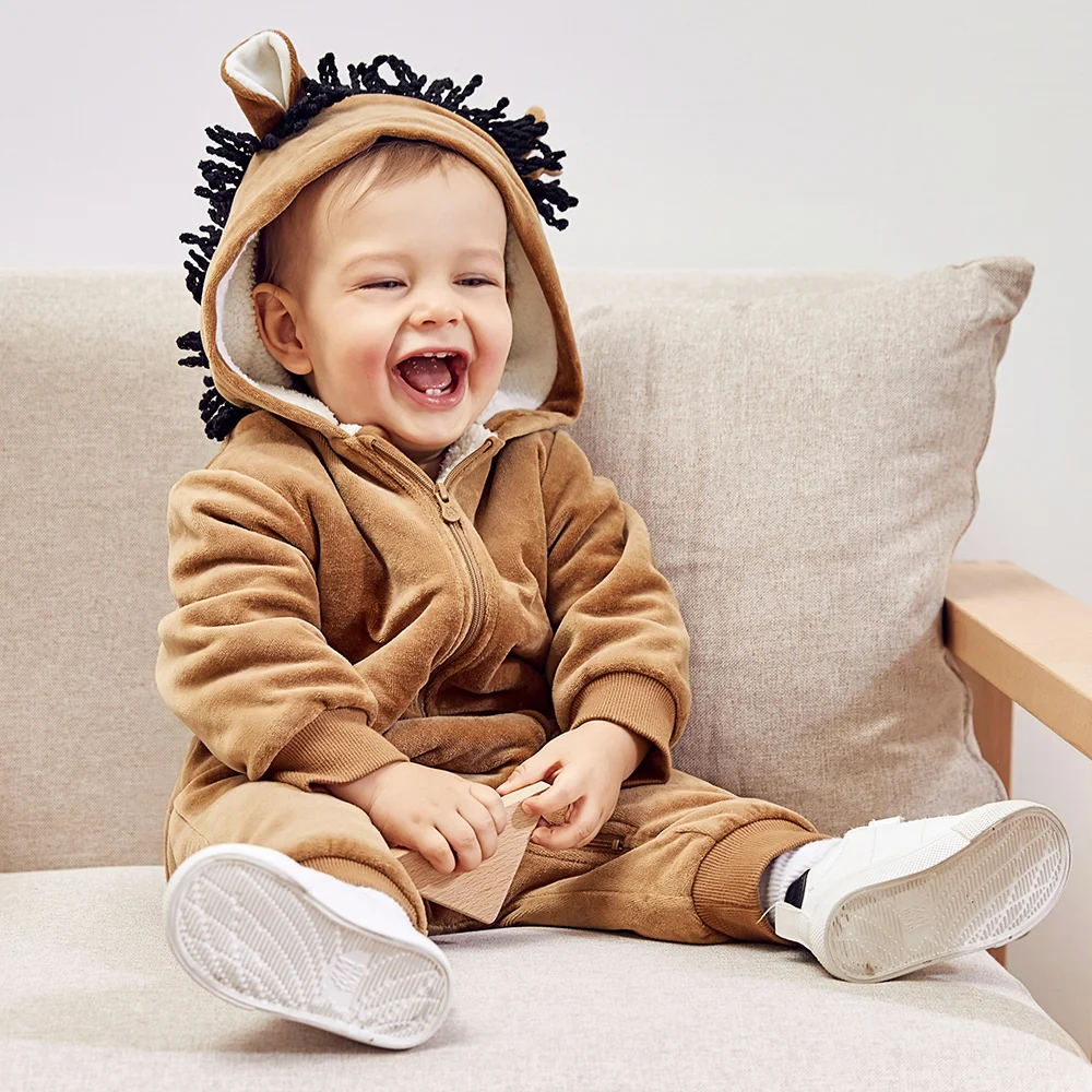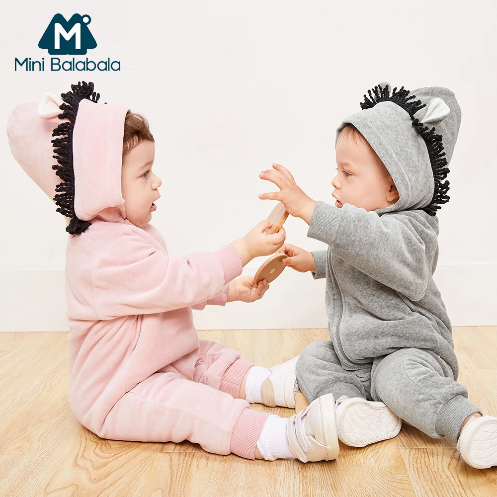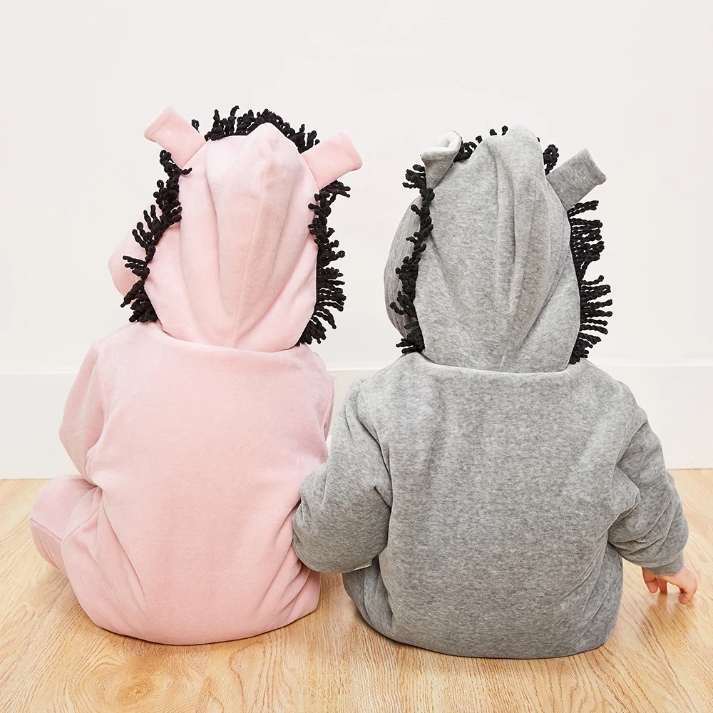 Good Price for Mini Balabala Baby Critter Romper Long Sleeve Cotton Sherpa-lined Hoodie One-Piece Newborn Infant B